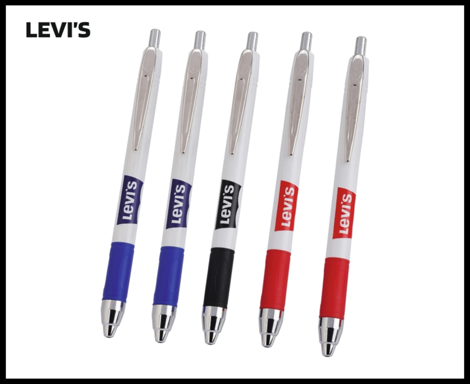 045. Plastic Ball Pen Customised Printing /Levis Omega White | Corporate Gifting & Branding