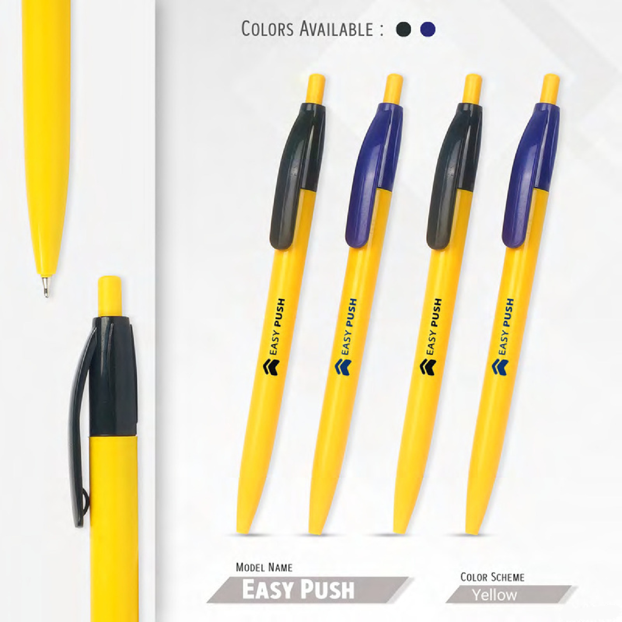 095. Plastic Ball Pen Customised Printing /Easy Push White/Colour/Yellow | Corporate Gifting & Branding