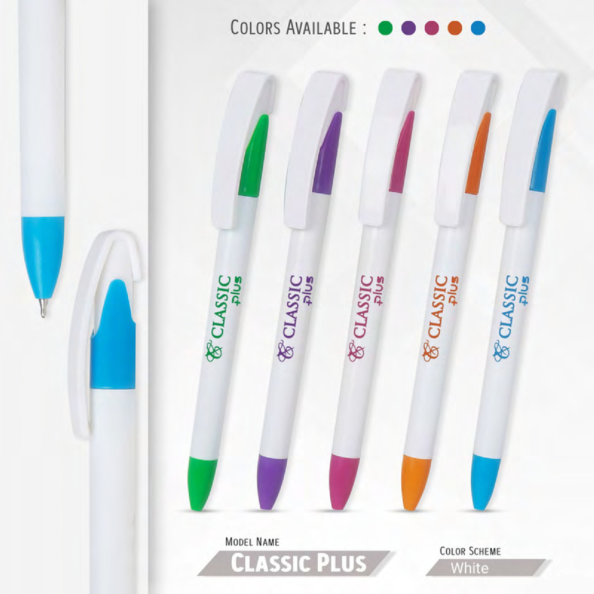 112. Plastic Ball Pen Customised Printing /Classic Plus White | Corporate Gifting & Branding
