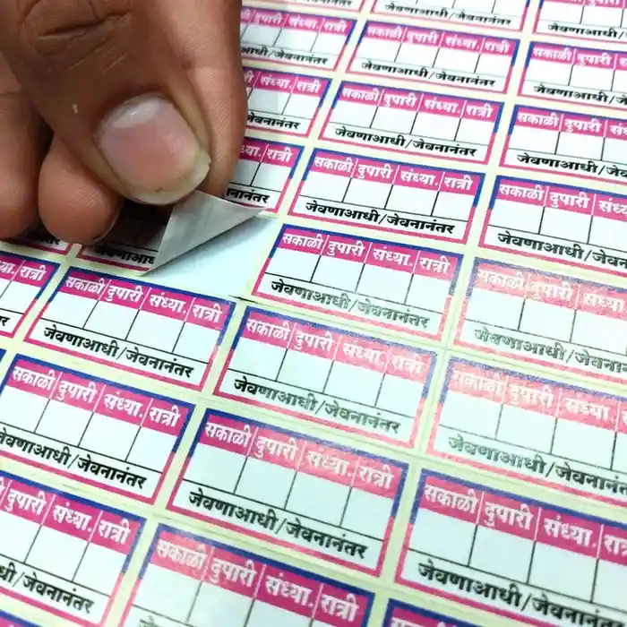 You're viewing: Readymade Marathi Prescription Stickers | Glossy Paper Sticker/Label | 1.2ร0.6 In | Best For Dose Indication On Tablet StripsStarting from ₹500.00